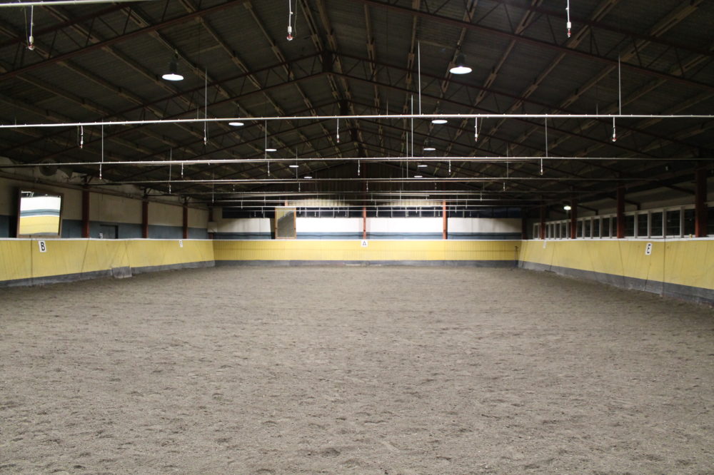 Den befintliga belysningen ersattes i detta ridhus med 14 st av våra Osby LED armaturer på 150W. Färgtemperaturen valdes till neutralvitt 4000K för att ge ett klart, skuggfritt ljussken. Armaturerna sitter placerade i 2 rader, 5,5 meter upp över den 40×20 meter stora ridytan. Innan bytet var de uppmätta ljusnivåerna låga, som högst 150 lux. Efter installation av LED belysningen hamnade ljusnivån klart över 250 lux vilket Svenska ridsportförbundets rekommenderar för hoppning!